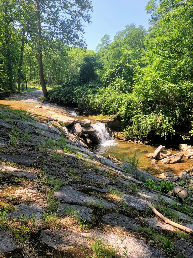 We kept hiking past it and up a set of stairs made out of rocks until we came to the conclusion that this isn’t the right spot. So we headed back to the mini waterfall and picnicked there for lunch. We had nutella sandwiches (a classic for my road trips) and mini sandwiches that her mom gave us. Even though we had just begun our day at the waterfall, this was a nice little break since it was sooo hot that day. Afterwards we headed back to our car, got in and began to drive away to see where Buttermilk Falls actually was. As soon as we turned out of the parking lot, we saw a small sign for Buttermilk Falls and people entering the little path so we immediately turned around and parked our car where we just had it!