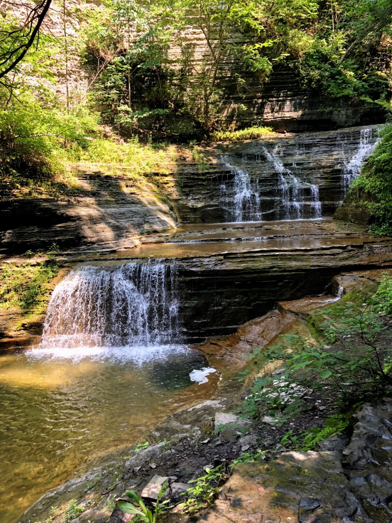 Buttermilk Falls is a stunning cascade of waterfalls located in Ithaca, about an hour and fifteen minutes away from Syracuse, New York! The drive to Ithaca is my favorite – it’s so peaceful and as you head into Ithaca you pass so many little waterfalls! This is a super well known spot to cool off, so come early in the day to beat the crowds.