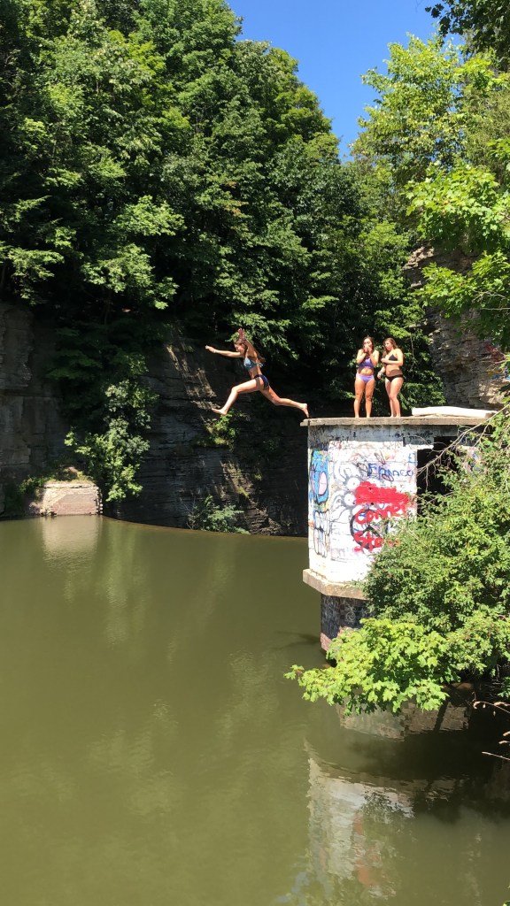 I asked my friends who went we me what their thoughts were, this is how Gianna describes this place. “This is for sure the definition of a hidden gem. It’s tucked away behind those woods. The cliff feelsss wayyyyy higher when you’re actually up there but once you jump it’s so freeing!”