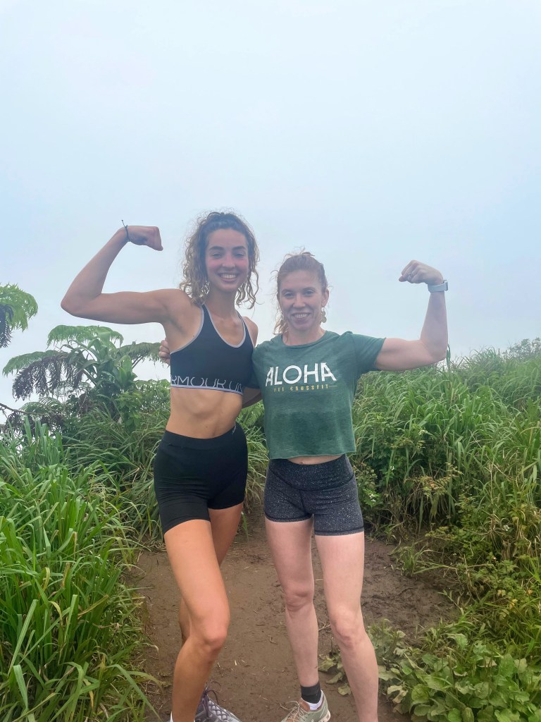 We hiked the Waihe’e Ridge Trail on a Saturday morning, and arrived around 10:30 or 11am. It felt weird leaving so late in the day for a hike because in Arizona, normally you’d want to be done with your hike at that time because it gets so hot out! Nevertheless, the weather was perfect for this hike. When we arrived, we had to wait about 30 minutes for a spot in the top parking lot because we didn’t want to add an extra steep half mile to the already 4 mile hike we had ahead of us. Luckily there was a cute horse next to us as we waited!
