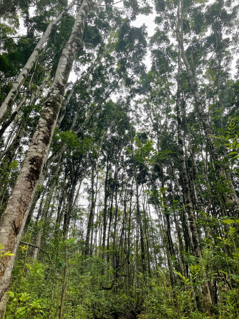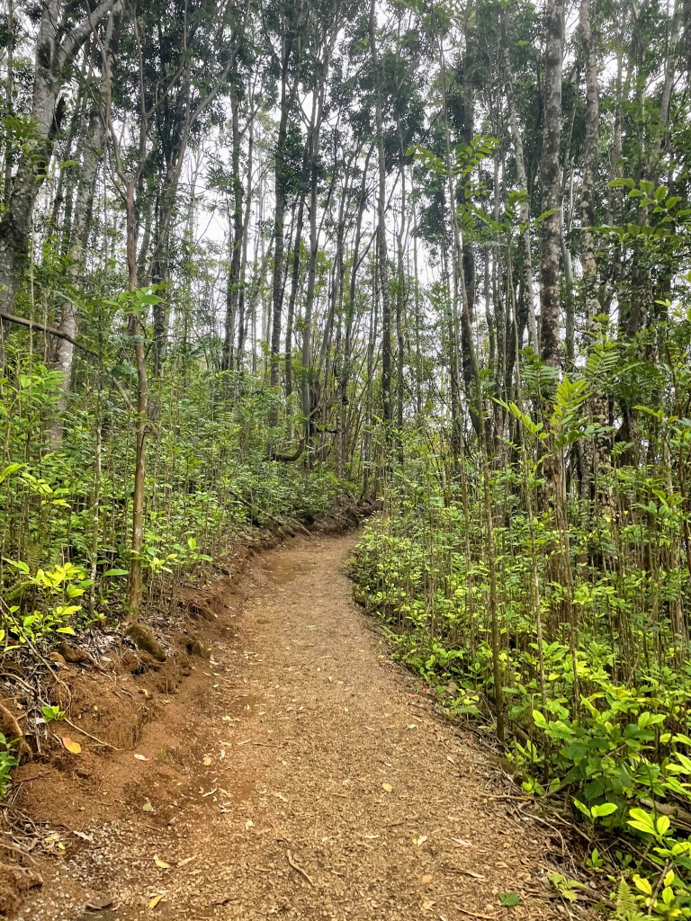 Once we parked, we put on some sunscreen then started our trek up the mountain! The hike started off with a super steep incline on pavement but then leveled out after a few hundred feet. After the steep incline, we were hiking through the trees, and since it was so humid it felt and looked like we were in the middle of the rain forest!
