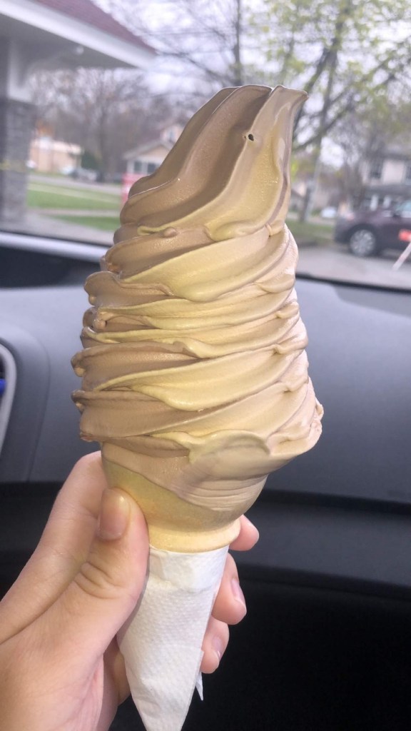 At Big Dip in North Syracuse, NY, my favorite ice cream of theirs is their chocolate peanut butter soft serve twist! Chocolate and peanut butter are my favorite two flavors and they did a great job with this ice cream.