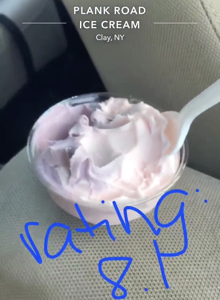 Tasting all of the ice creams from Cicero to North Syracuse was a fun way to kill time. I was surprised at how much I enjoyed Big Don’s ice cream since I normally think of them as a place to go mini golfing instead of getting ice cream. I normally don’t order fruity flavors, however I really enjoyed Plank Road’s red and black raspberry twist! The only place I wish we went to as well is Stewart’s. Like Byrne Dairy, they are also a gas station but in my opinion they have the best hard ice cream. It’s super soft and creamy, almost like you are having soft serve!