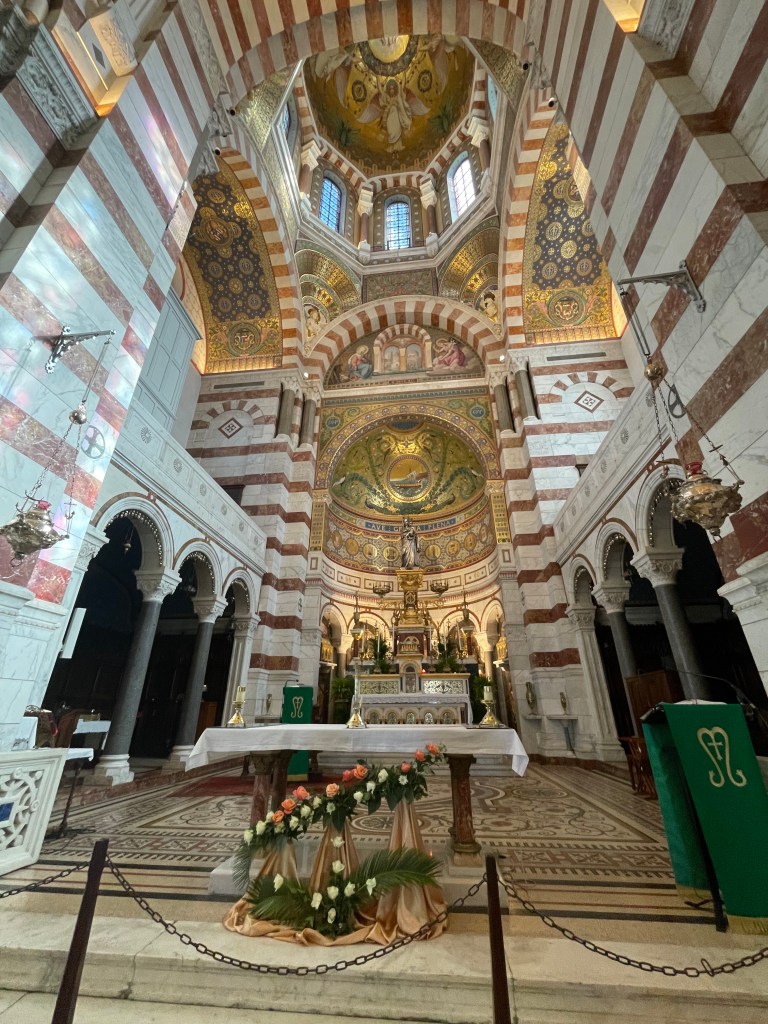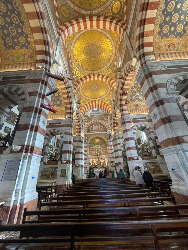 La Basilique Notre Dame de la Garde was absolutely stunning. The architecture was mesmerizing to look at, I loved the stripes going up. It was also an emotional experience for me. I’m not super sure why, but I hadn’t been to mass in about two years because of covid, and I don’t attend it while I’m at school. For some reason just walking into the chapel, not even the basilica made me feel emotional. I saw candles lit for peoples’ loved ones, so I decided to light one too. I remember when I visited the Chapel of the Holy Cross in Sedona, Arizona, with my mom and dad, my mom lit a candle in remembrance of her mother, so I decided to do the same.