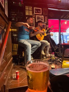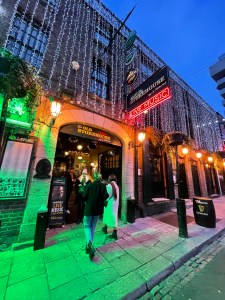After visiting the the Book of Kells and the Long Room, we had basically finished everything on our itinerary for the day, so we had a bunch of free time to explore. We walked around the streets of Dublin for a bit and then decided to go to the most famous pub in all of Ireland, Temple Bar. We went around 2:30pm on a Sunday, so we thought it wouldn’t be busy at all. But there was basically standing room only! They had a duo playing as we walked in, so we decided to listen to the music for a bit before finding a seat. We ended up getting a seat right next to the stage! Listening to Irish music at a pub in Ireland should be on everybody’s bucket list. I had so much fun there, everyone was super into the music, clapping and singing along. It was hard to not smile the whole time. We even made friends with the duo on stage since Ansley and I requested a few songs! We actually made a lot of friends at the bar, everyone was so nice. We made the observation that Irish people are like Americans, they love to talk to people and make new friends!