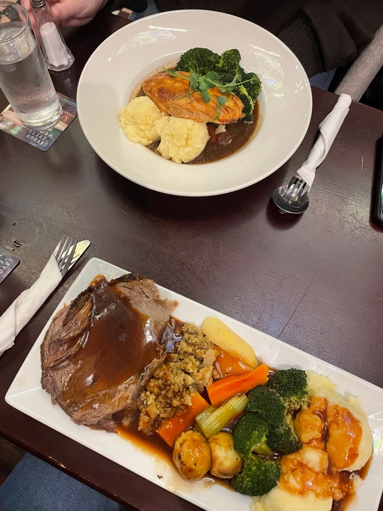 After walking around downtown Dublin for a bit after our tour, we had one last meal in Ireland at a traditional Irish pub called Madigan’s Earl Street. This restaurant was a great choice for us since their portions were big and would keep us full for a while, which is what we needed since we had an overnight layover in the Stansted airport that night. I ordered their roast beef and Ansley had their Guinness stew. Our Irish dinner was a great way to say au revoir to Dublin!