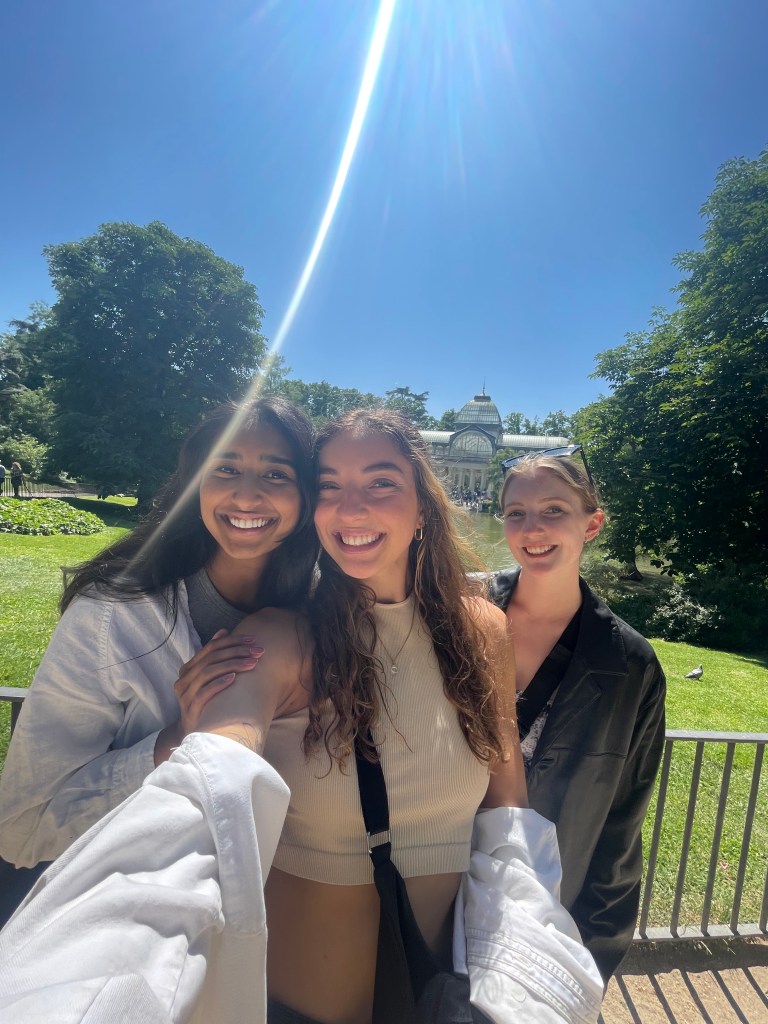We started our day in Madrid a bit later than normal, around 11am, and first went to the Humana Vintage store right near our Airbnb to look for jackets since it was a bit chillier than we expected it to be. I had been to a Humana Vintage in Milan the year before and loved it so I wanted to go to one in Spain! It’s basically a second hand store with tons of good quality pieces of clothing for a great price. Emma found a really nice, vintage, leather jacket for 30 euros! I found this really cute pink/purple jacket with a Spanish horses & royalty print on the inside. I don’t know what brand it is but the jacket was perfect for what I needed it for! Rohini had found a nice blue sweater to put over her tops. We all found unique pieces that complimented the clothes we brought on the trip really well.