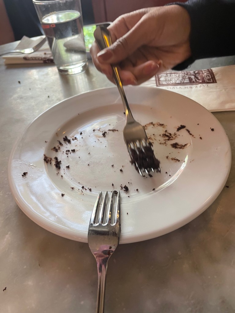 However, I really liked their tortillas, which are not the tortillas you would normally think. A Spanish tortilla is an omelette made with eggs and potatoes with a side of toast. This made up for the avocado toast! For dessert, yes dessert at breakfast, we all shared the best chocolate raspberry cake I’ve ever tasted! It was very dense and rich, and the raspberry flavor perfectly complimented the chocolate.