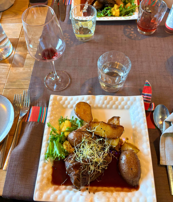 My first course consisted of a pumpkin soup, which was followed by beef tenderloin and pan roasted potatoes with a chanterelles pöltsaama red wine sauce, and finally a panna cotta with a fresh jam for dessert.