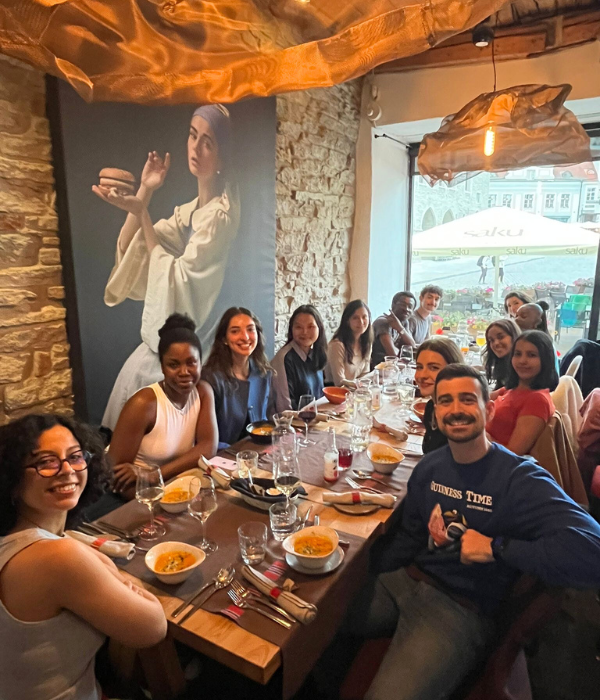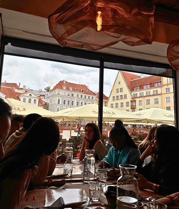 To celebrate the end of our International Seminar, we had a class dinner organised at Restaurant Kaerajaan, located centrally at the historical town square of Raekoja Plats that dates back to the 15th century. This restaurant takes traditional Estonian cuisine and brings a modern flare to its dishes, which provides a great way to experience typical flavors and ingredients from this Baltic country.